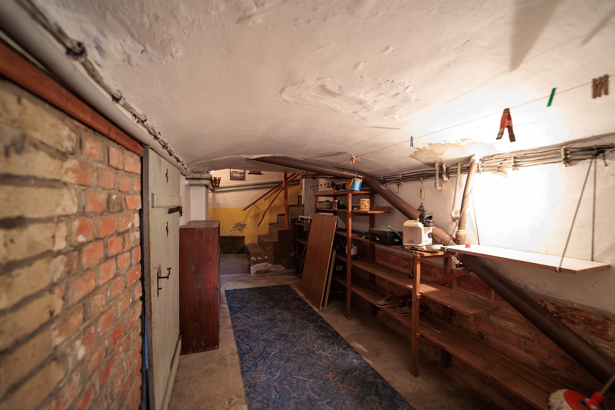 Ve sklepě se nachází technická místnost s boilerem a plynovým kotlem. Místo tam je buď na uskladnění věcí, nebo i zařízení dílny.