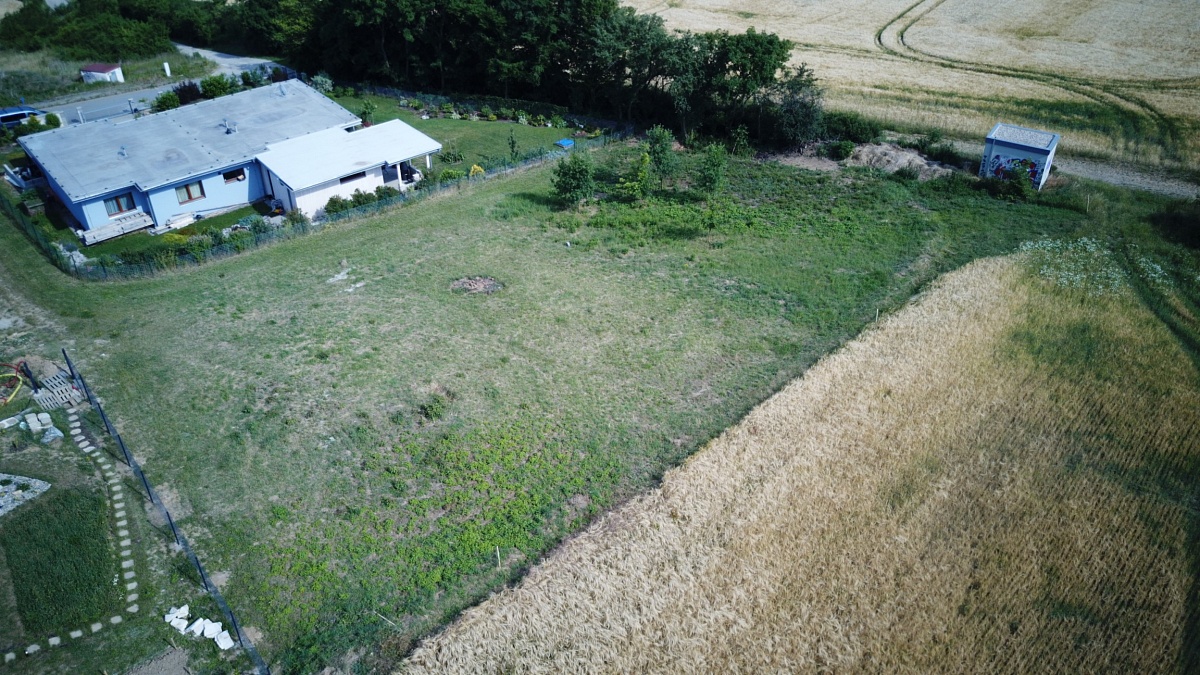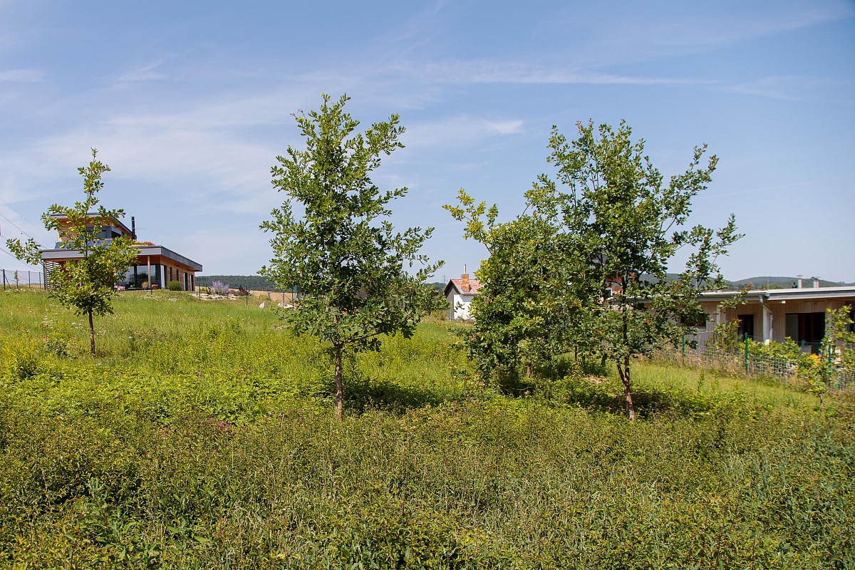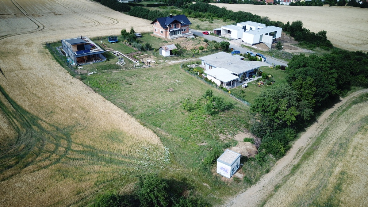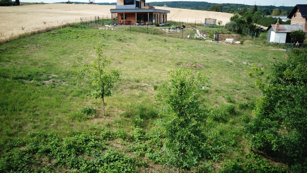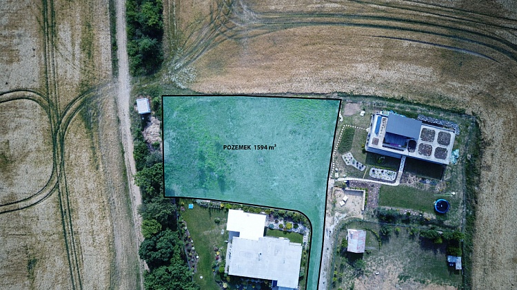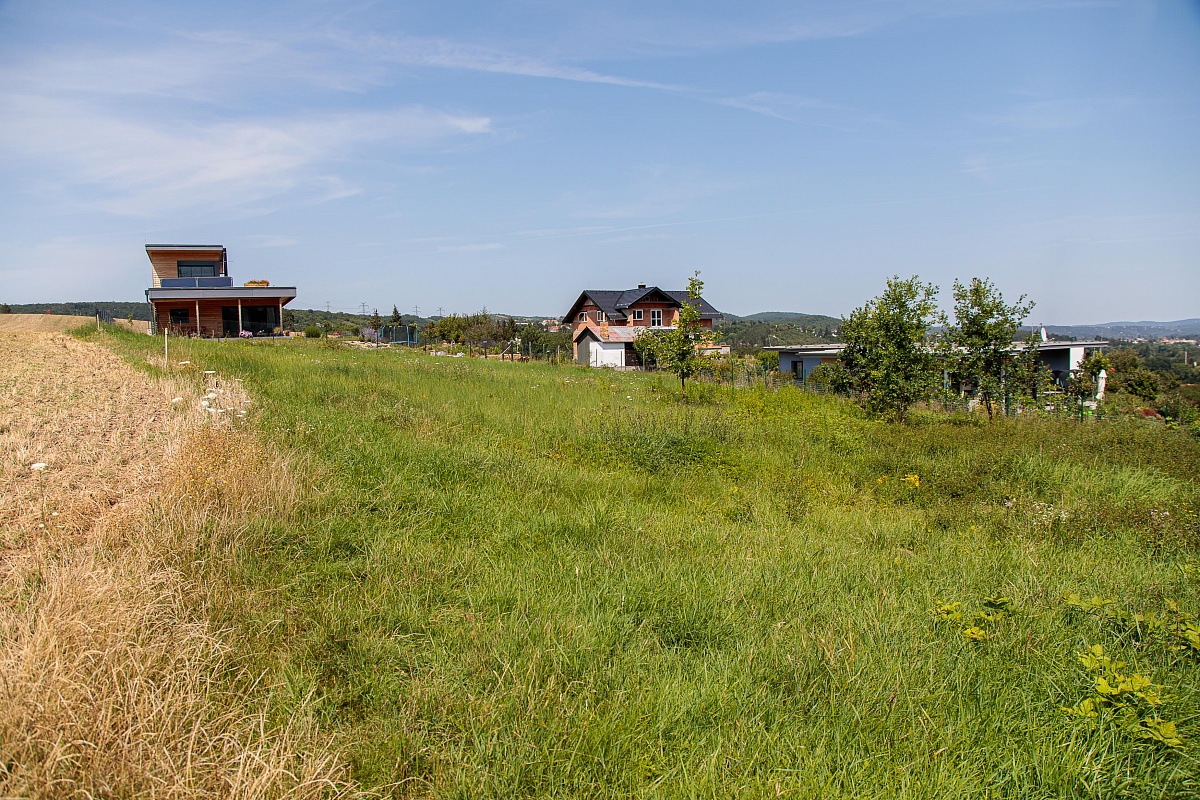 Pozemek má tvar lichoběžníku o délce stran 32, 43 a 51 m, nachází se v mírném jihovýchodním svahu. V okolí domu je již dokončená zástavba rodinných domů. Na pozemku je zajištěno napojení na veškeré důležité inženýrské sítě - elektřina, voda, kanalizace, plyn. Dále vydané povolení ke zřízení vrtu / studny. Přístup k pozemku je po asfaltové silnici. Zastavitelnost pozemku je dle územního plánu 35% zastavěné plochy k celkové výměře pozemku a výšková hladina stavby je 9 metrů.