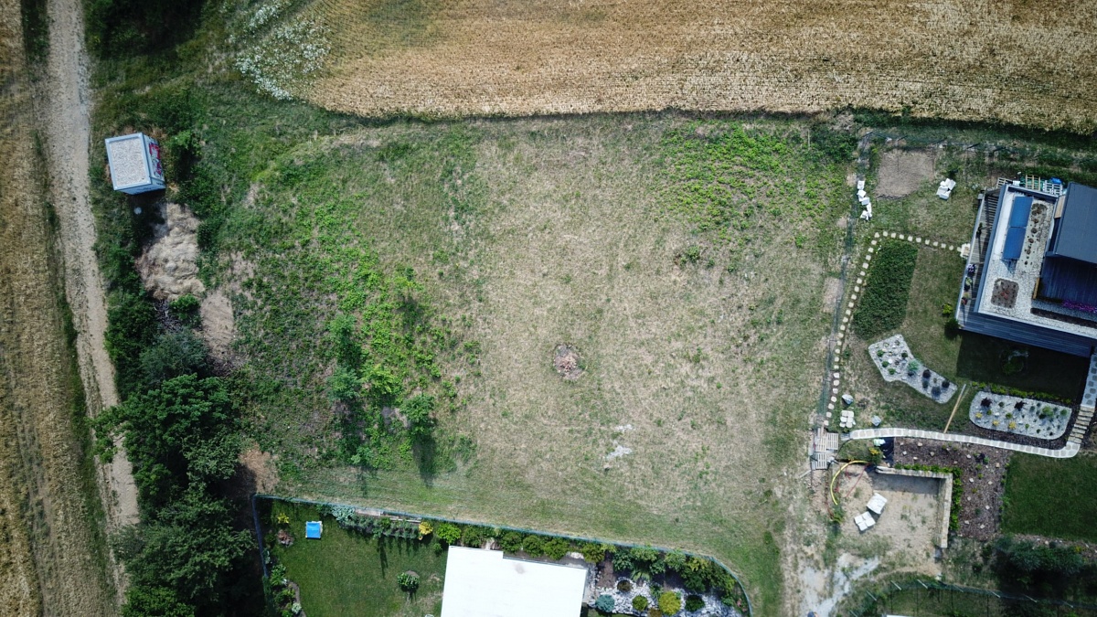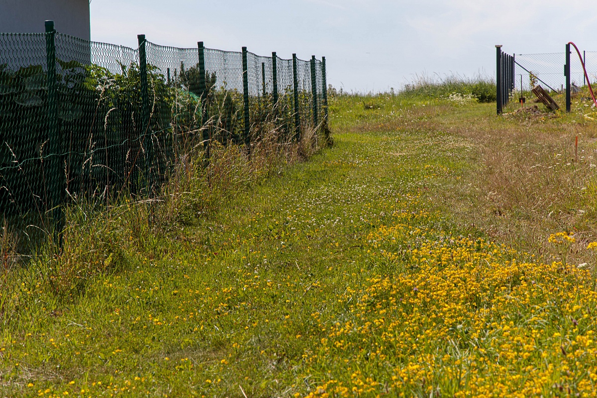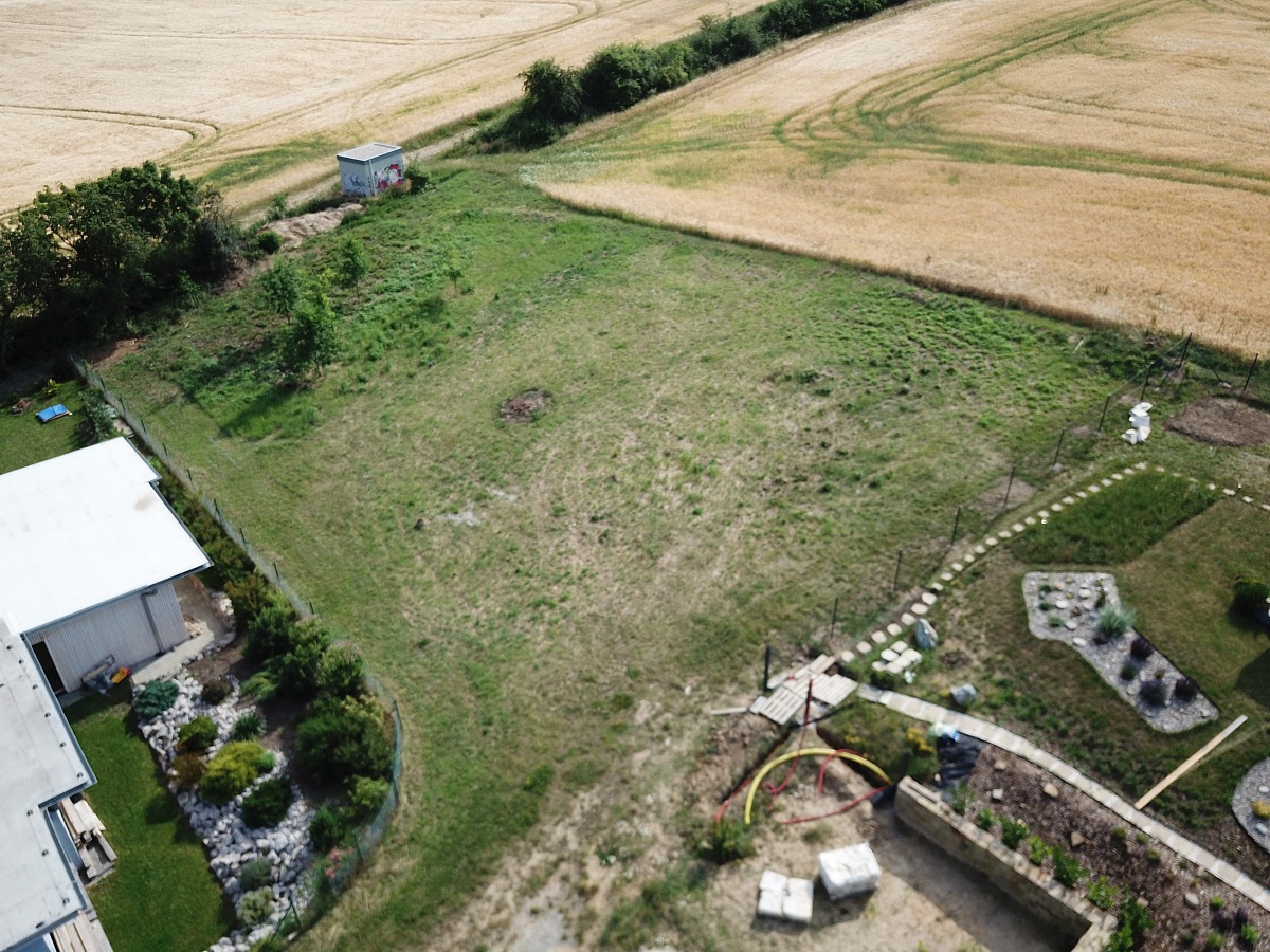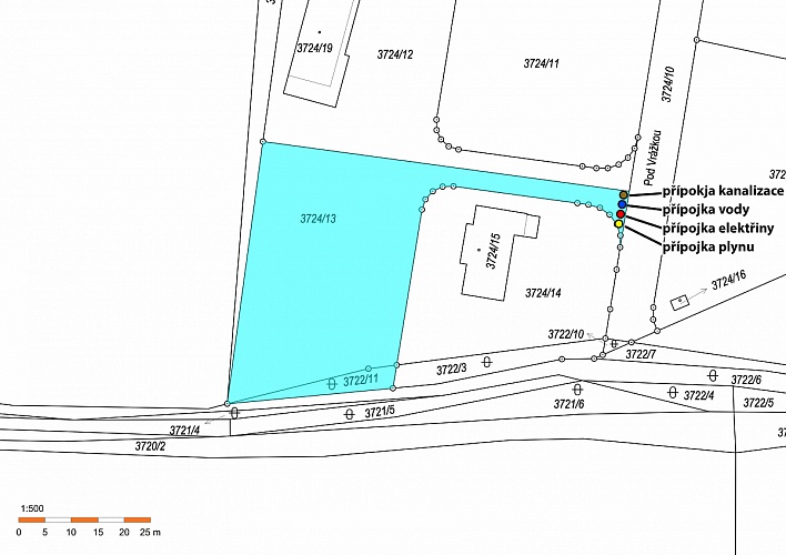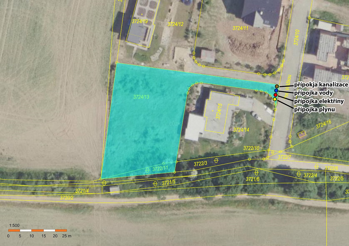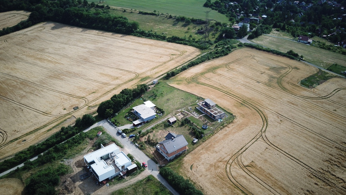 Pozemek má tvar lichoběžníku o délce stran 32, 43 a 51 m, nachází se v mírném jihovýchodním svahu. V okolí domu je již dokončená zástavba rodinných domů. Na pozemku je zajištěno napojení na veškeré důležité inženýrské sítě - elektřina, voda, kanalizace, plyn. Dále vydané povolení ke zřízení vrtu / studny. Přístup k pozemku je po asfaltové silnici. Zastavitelnost pozemku je dle územního plánu 35% zastavěné plochy k celkové výměře pozemku a výšková hladina stavby je 9 metrů.