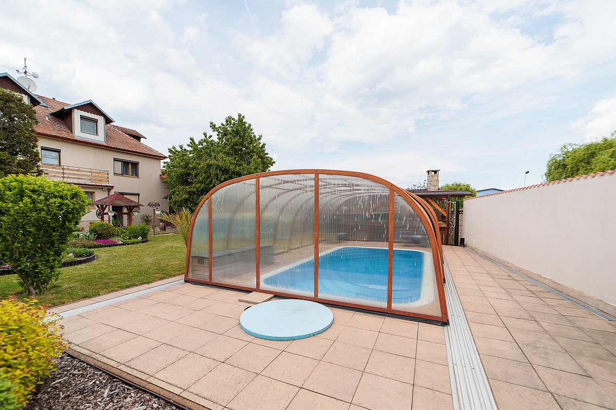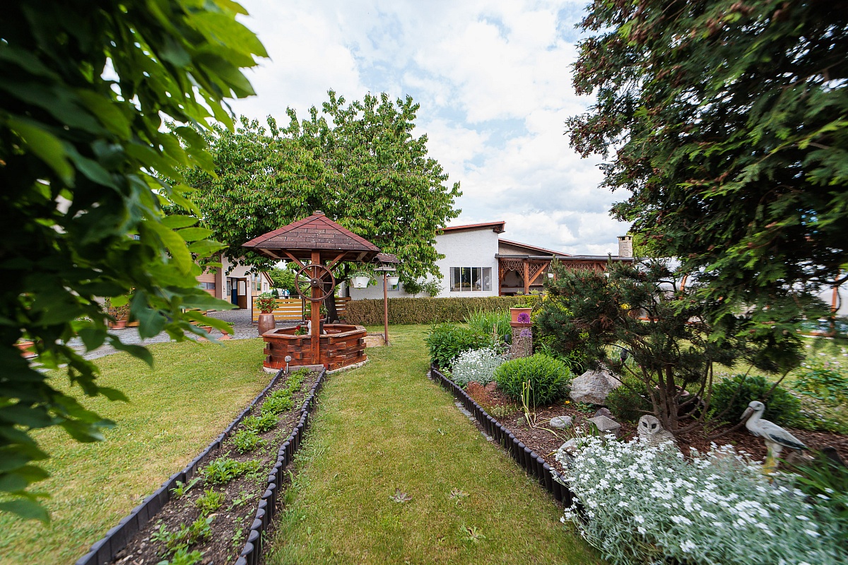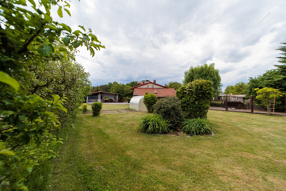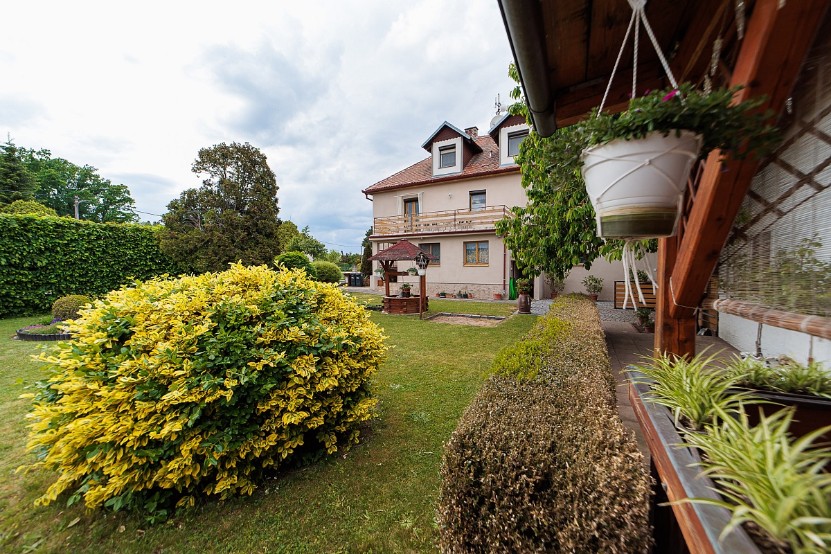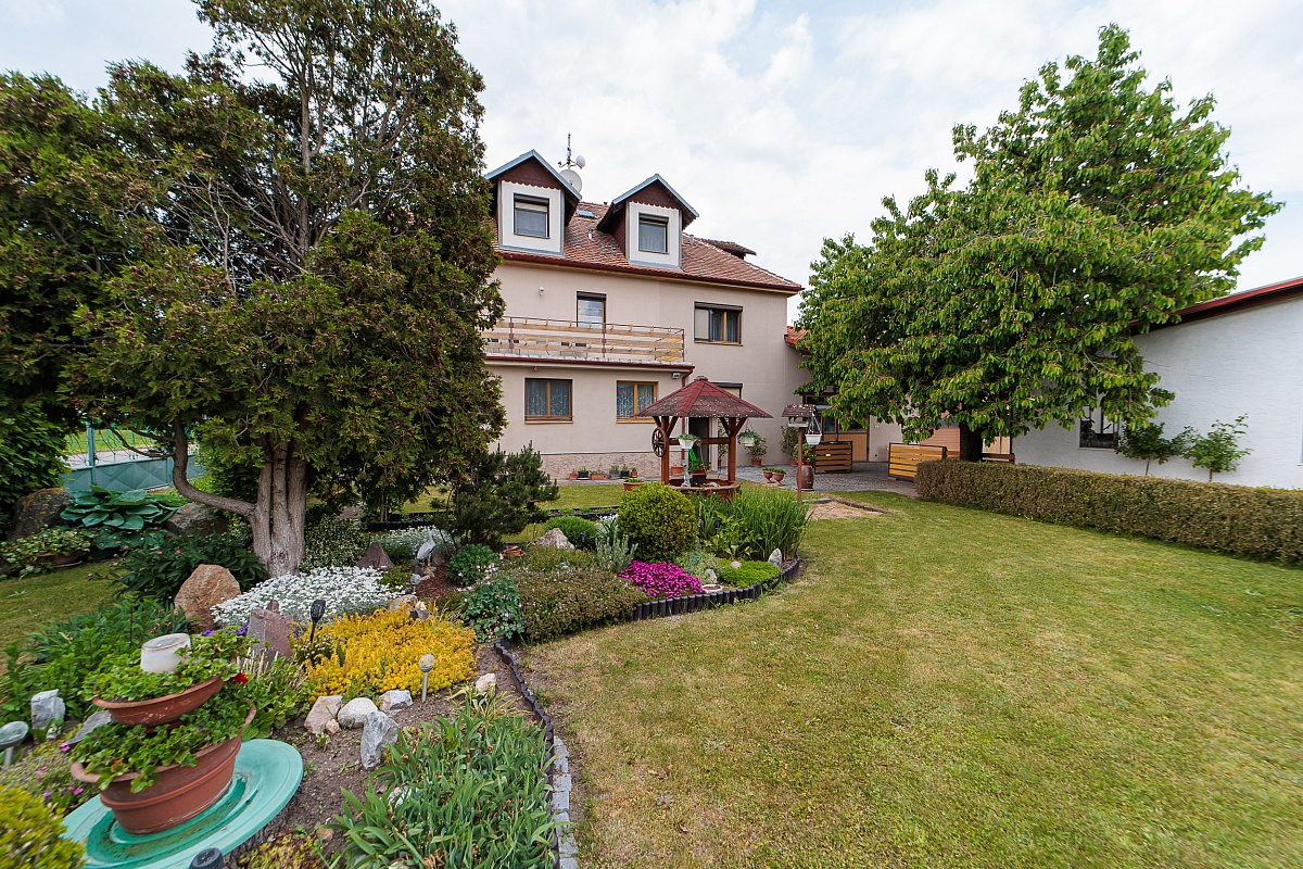 Velkou předností je pečlivě udržovaná zahrada, kde nechybí jak krytý bazén, tak i krásná pergola s krbem a letní kuchyní. Je zde také dostatek prostoru pro pěstování ovoce a zeleniny. Vysoký plot vám zajistí odpočinek v naprostém soukromí. Dvůr vydlážděn žulovými kostkami a je zde dostatek místa pro parkování. Nechybí tu zkrátka vůbec nic.
