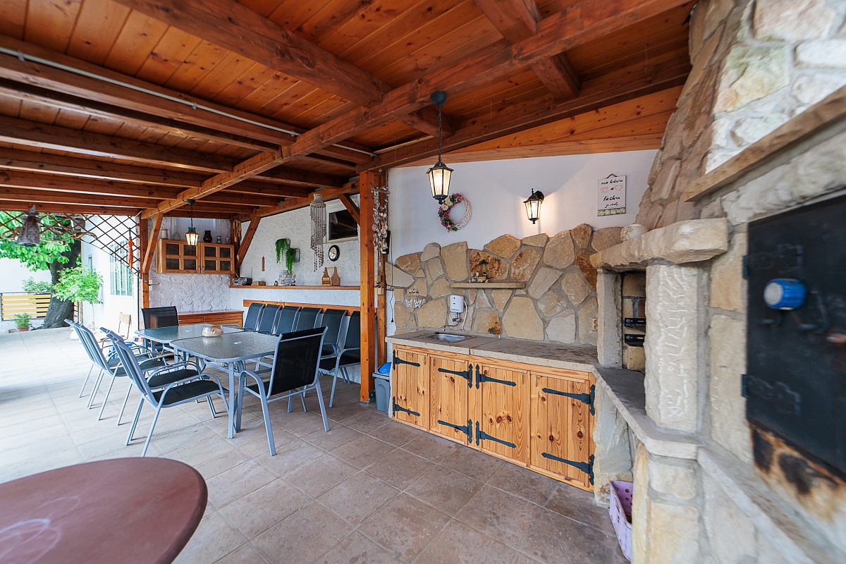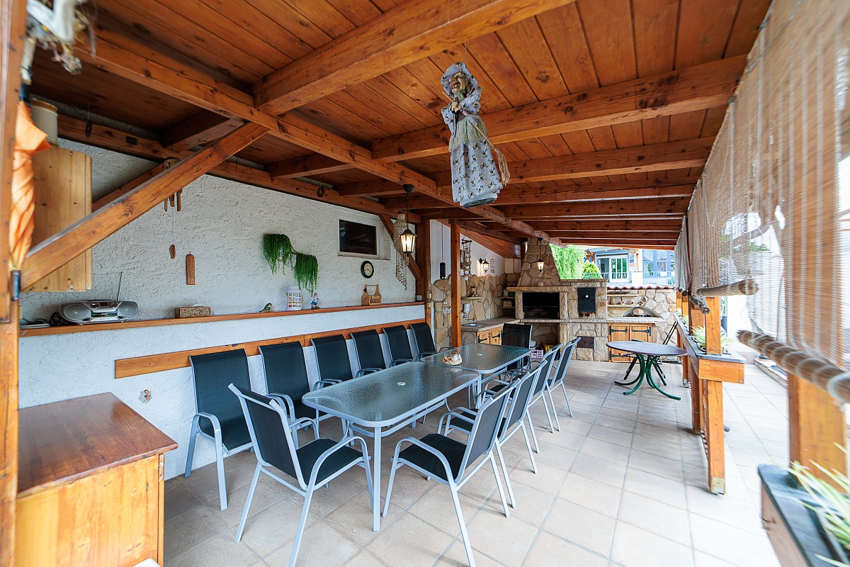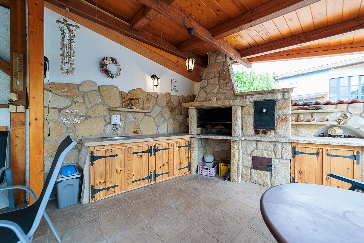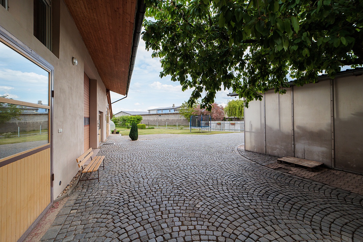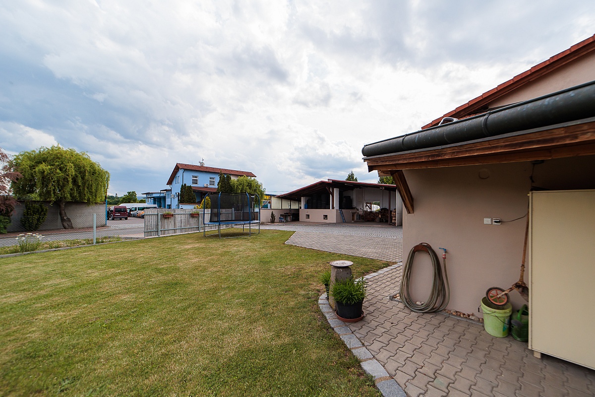 Velkou předností je pečlivě udržovaná zahrada, kde nechybí jak krytý bazén, tak i krásná pergola s krbem a letní kuchyní. Je zde také dostatek prostoru pro pěstování ovoce a zeleniny. Vysoký plot vám zajistí odpočinek v naprostém soukromí. Dvůr vydlážděn žulovými kostkami a je zde dostatek místa pro parkování. Nechybí tu zkrátka vůbec nic.